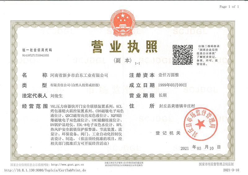 河南省新鄉市啟東工業有限公司始建于1987年,是專注研發、生產自動化儀器儀表(主要與壓力容器、鍋爐等容器配套使用)的廠家。主要產品有液位計(磁敏雙色型、磁翻柱型等)系列、烤包器熄火聯控裝置系列、壓力容器快開門安全聯鎖保護裝置系列、鍋爐報警器系列。二十多年來,公司產品暢銷國內并遠銷俄羅斯、蒙古與東南亞,深得廣大用戶的信賴和好評。我們多年來致力于自動化儀器儀表的研制生產,公司現具有完善的生產、試驗、檢測手段和設備??萍紕撔隆⒄\信服務,是我們不變的經營理念,我們將以強有力的技術支持及售后竭誠為客戶提供良好的服務。  2012年我公司成功研發了KCL系列烤包器熄火聯控裝置,并于2013年2月2日榮獲中華人民共和國國家知識產權局辦法的《實用新型**證書》<**號:2021202257735>該產品廣泛應用于唐鋼等大型鋼鐵企業,為烤包器安全作業提供了有力的保障。  2002年我公司成功研發磁敏電子雙色液位計獨特的高亮度LED紅綠雙色顯示,獲得了專家的首肯和用戶的一致好評。在此基礎上我公司研發人員十年磨一劍,致力于XQFB-1防爆型磁敏雙色液位計的研發,于2013年12月27日由國家防爆電器產品質量監督檢驗中心檢驗合格并頒發防爆合格證書<編號:cnex19.0883>。該產品性能得到了充分的發揮,廣泛應用于含有Ⅱ類A·B級T1-T4組可燃氣體或蒸汽與空氣混合形成的爆炸性混合物的0區、1區危險場所。連接用戶DCS或PLC系統實現遠距離集中顯示和控制,從而實現節能、數字化管理。為用戶增加了一定的經濟效益和社會效益,。2014年公司成功申請了夢潤儀表的logo,新的品牌新的形象,夢潤儀表是啟東的LOGO, 歡迎新老用戶前來洽談合作?! ∥覀円蝗缂韧刈⒅乜蒲械耐度?,憑借產品的不斷更新、加大科技含量,進一步拓展市場。我們相信品質成就未來,以過硬質量、優惠價格、完善的售后服務熱忱歡迎廣大客戶來我司視察指導、洽談業務;精誠合作,共創輝煌!